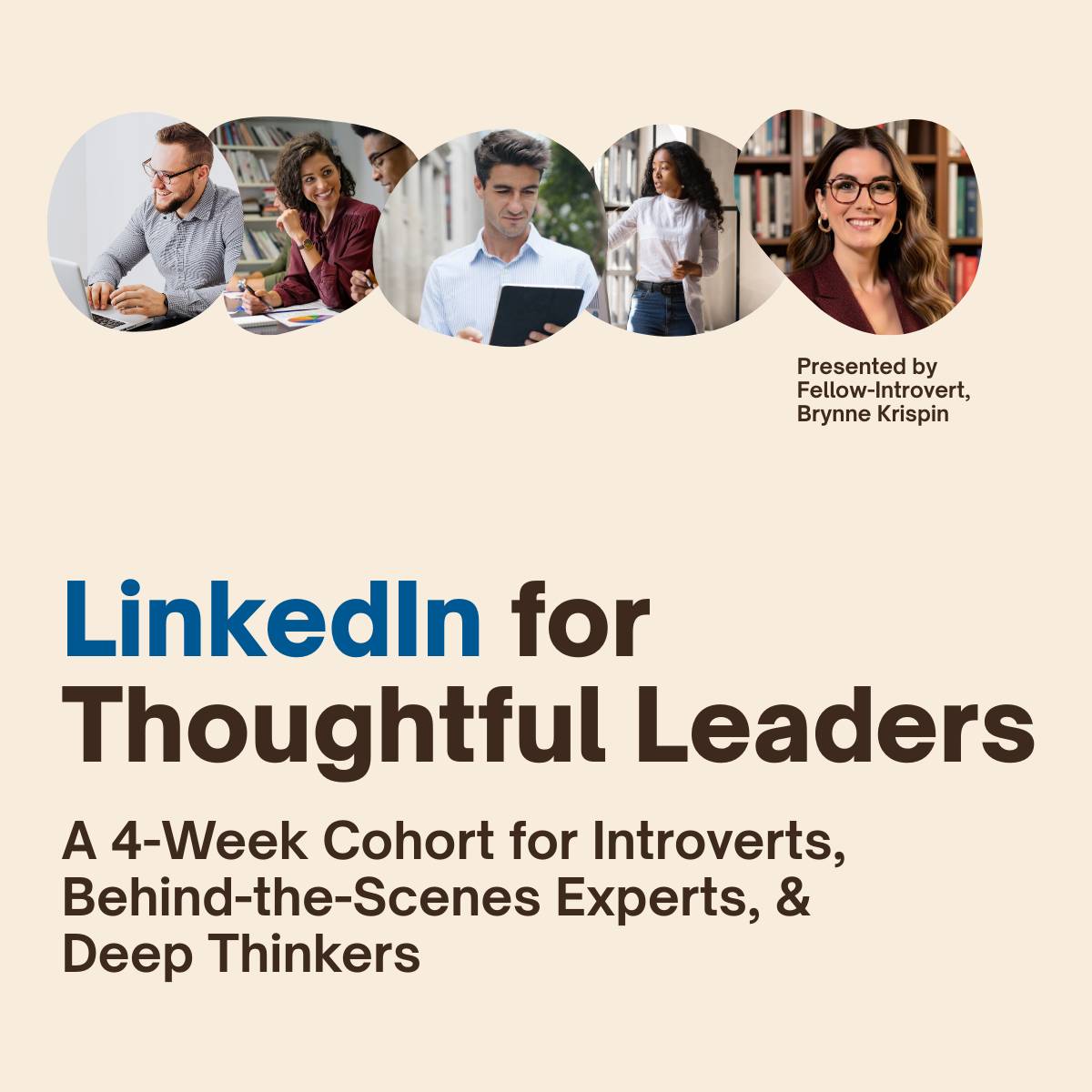 A 4-week LinkedIn strategy cohort for introverts, behind-the-scenes experts, and deep thinkers who want to do LinkedIn differently.